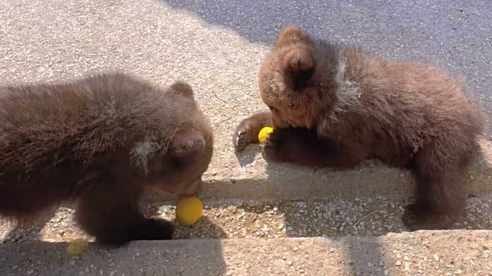 Медвежата Топа и Кнопа очень МИЛЫЕ! Еще не понимают яблок, что с ними делать, ведь они едят кашу!