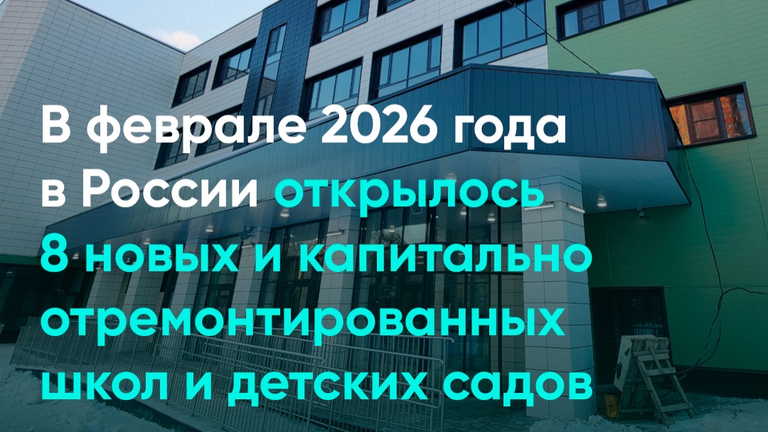 В феврале 2026 года в России открылось 8 новых и капитально отремонтированных школ и детских садов