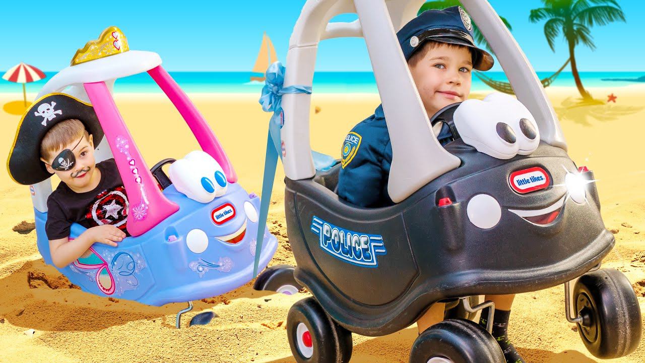 Эрик и Глеб вместе играют в пиратов и полицейских. Пират перехитрил полицейского и его напарника, игрушечную полицейскую машину. Он разрушил дверь, устроил побег из тюрьмы и украл игрушечную машину принцессы. Полицейский догнал его на электромобиле, когда машина принцессы застряла в песке. Полицейская машина вытащила машину принцессы из песка. #ErikShow #ЭрикШоу ► Vkontakte: https://vk.com/erik_show