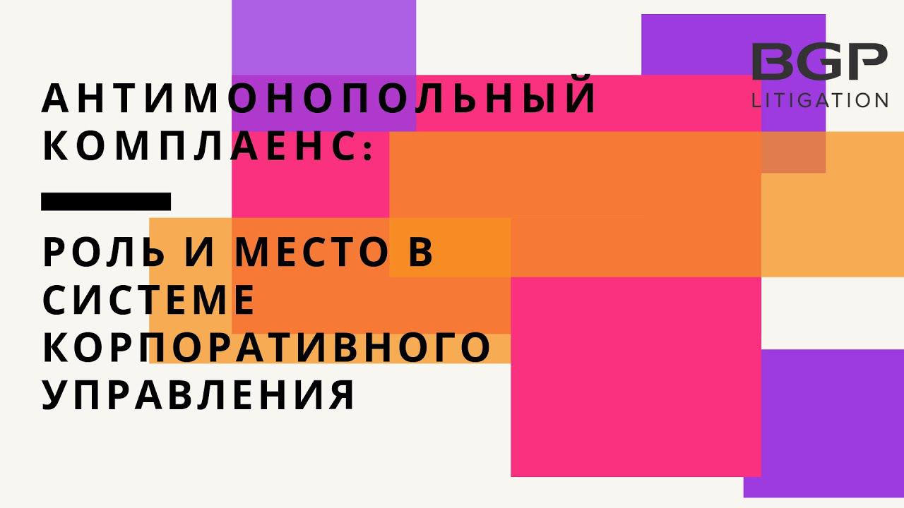 В современных условиях руководитель или владелец бизнеса имеет существенный риск столкнуться с нарушением антимонопольного законодательства. В силу разнообразности и сложности составов, предприниматели могут даже не догадываться о тех или иных нарушениях, поскольку выявить их бывает достаточно непросто. Возможность выявить и предупредить разнообразные нарушения позволяет система антимонопольного комплаенса. Подробнее о лекции: 00.23 — Что такое антимонопольный комплаенс? 01.32 — Роль антимонопольного комплаенса в компании 02.30 — Место антимонопольного комплаенса в системе корпоративного управления 03.44 — Структура построения системы антимонопольного комплаенса 07.53 — Взаимодействия комплаенс-офицера с подразделениями компании 08.20 — Когда необходим комплаенс-контроль? 09.03 — Неэффективность антимонопольного комплаенса 11.40 — Преимущества внедрения ситемы антимонпольного комплаенса Присоединяйтесь к BGP Litigation в социальных сетях: ▪️Facebook https://www.facebook.com/bgplitigation ▪️Telegram https://msto.me/card1620203889/ Связаться с нами: ▪️https://bgplaw.com ▪️office@bgplaw.com ▪️+7 (495) 777 28 20