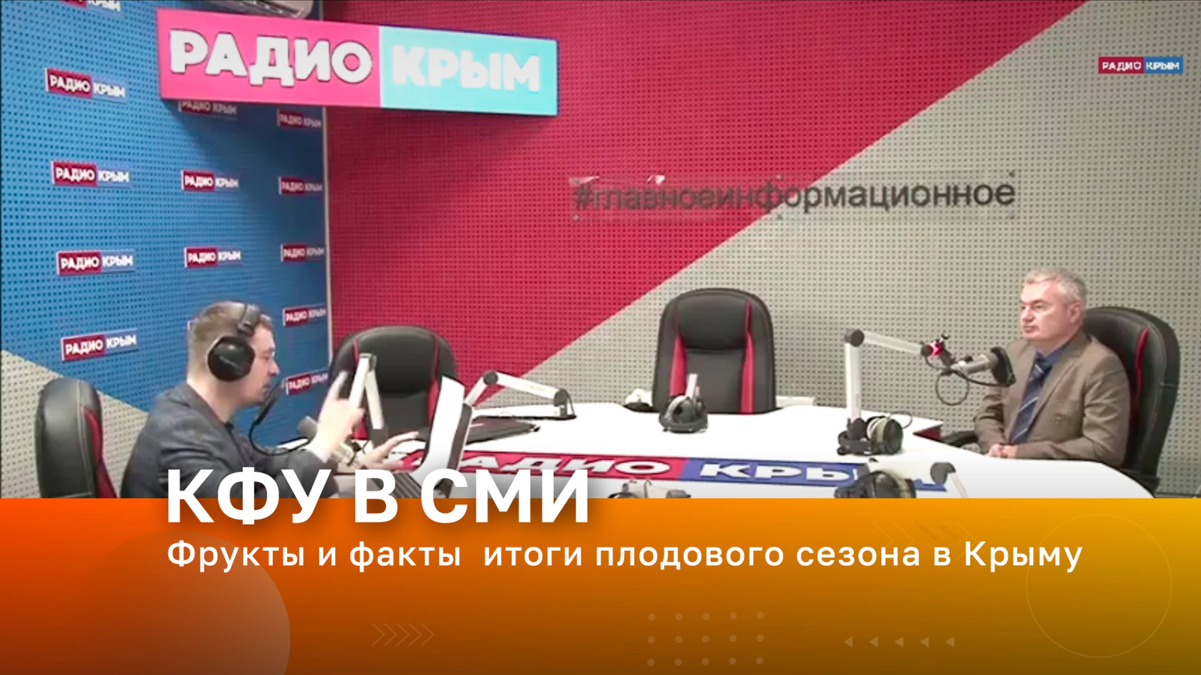 Радио «Крым». В эфире – доцент кафедры плодоовощеводства и виноградарства КФУ им. В.И. Вернадского Дмитрий Потанин Тема эфира – Фрукты и факты: итоги плодового сезона в Крыму.