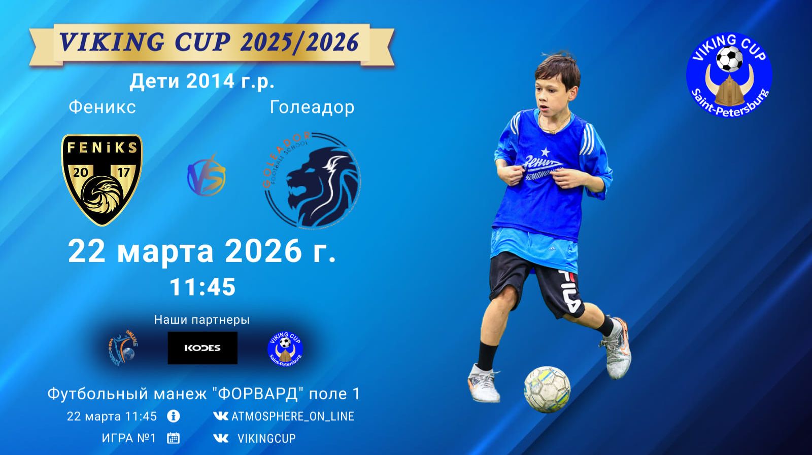 VIKING CUP среди команд 2014 г.р. (U12), Поле 1 22 марта 2026 САНКТ-ПЕТЕРБУРГ, ФЦ "Форвард" Феникс-Голеадор/VIKING CUP, Игра №1, 22-03-2026 11:45