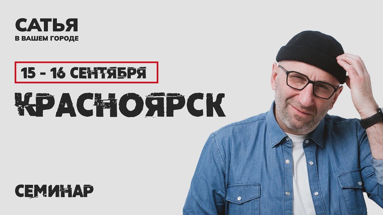 15 -16 сентября Сатья в Красноярске. Новый, уникальный формат Не знаешь кто такой Сатья? 4,5 миллионов подписчиков в соцсетях и YouTube. Входит в топ 10 лидеров доверия россиян среди блогеров. Автор 17 книг по семейной психологии. Провёл более 7000 консультаций для мужчин, женщин и пар. 29 лет женат на одной женщине, а это уже талант. Такого семинара Вы ещё не видели. Это Новый, уникальный формат. - Никаких энциклопедических и абстрактных фраз - Без оторванных от жизни примеров и ситуаций -Только знания, которые реально применить прямо здесь и сейчас! С ответами на вопросы гостей семинара С разбором конкретных ситуаций из зала С пошаговым планом действий под определённую проблему в стиле Сатьи - весело и жизненно! Купить билеты на семинар Сатьи: https://th.link/2Bpqw Заказ книг на сайте: https://th.link/2Bpr6 Получить консультацию психолога: https://cbiletom.ru/event.php?event=2694 Ссылки на другие соц.сети : https://th.link/2BprQ Серия бесплатных уроков о построении отношений — https://th.link/2BprY #сатья #сатьядас #нескучнаясемейнаяпсихология #семейнаяпсихология #семья #любовь #сатьяэксперт #постороениеотношений #детскоевоспитание #женскаясамооценка #мужскоеиженское #женщинаиработа #счастливаясемья #секс #дети #женскаяпсихология #мужскаяпсихология #психология