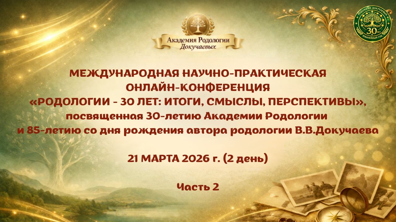 Мы в Мах https://max.ru/join/5SeaV1SIqXDNvtQXbBaUHJcpMyKcmiznDuzGBAKj-Io Мы в ТГ https://t.me/rodologia_dokuchaevyh Мы в ВК https://vk.com/akademyrodology В этой части конференции ведущие эксперты, ученые, психологи и родологи из России и Казахстана делятся результатами исследований о том, как история семьи, гены и опыт предков влияют на судьбу, здоровье и успех потомков. Вы узнаете о механизмах эпигенетического наследования, работе с генетическим трансом и методах трансформации деструктивных родовых сценариев.В этом блоке эксперты из России, Казахстана, Узбекистана, Азербайджана, Польши и США представляют уникальные исследования на стыке психологии, истории и этнокультуры. Мы продолжаем исследовать, как национальная идентичность, древние обычаи и даже сказки предков формируют нашу сегодняшнюю реальность: от успехов в бизнесе до отношений с недвижимостью.