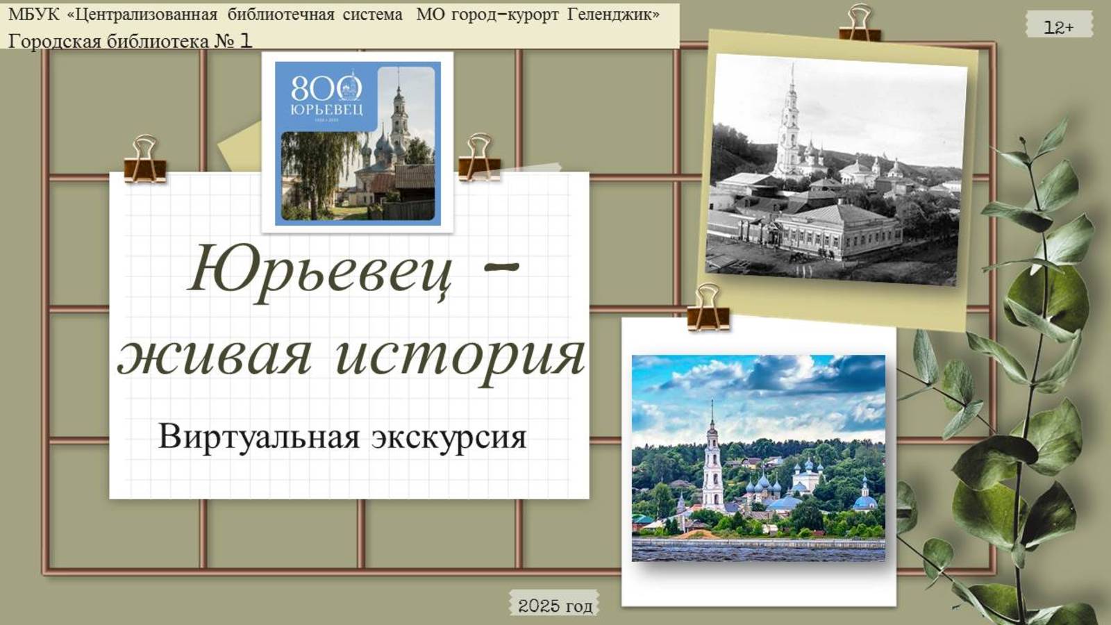 В 2025 году Юрьевец – старейший малый город Ивановской области – отметит 800 лет со дня основания. Эту знаковую дату вместе с Ивановской областью отметит вся страна на государственном уровне. Указ об этом подписал президент России Владимир Путин. Городская библиотека №1 пригласила читателей совершить виртуальную экскурсию «Юрьевец – живая история». В начале нашей экскурсии пользователи узнали, что основателем города считается великий князь Владимирский Юрий (Георгий) Всеволодович. Согласно легенде, в этом месте, на высоком берегу реки, князю явилась чудотворная икона его святого покровителя, великомученика Георгия Победоносца. В честь этого события и было решено «лес сечь, храм и крепость срубить». Следующие слайды экскурсии рассказали о Юрьевце как о пограничной крепости, о времени, когда город вошёл в состав Московского государства и как жители Юрьевца доказали свою верность Москве делом в Смутное время. Город храмов. Город музеев. Здесь находится паломническая святыня — могила святого Симона. Родина детства великих режиссеров Андрея Тарковского и Александра Роу, гениев конструктивизма, архитекторов-братьев Весниных. Юрьевецкие красоты оставили в своих картинах А.Саврасов, И.Левитан, Б.Кустодиев, А.Бенуа. Маленький, но такой уникальный город живет большими надеждами на перемены. И гостеприимный Юрьевец станет успешным и прекрасным. Юрьевец, живи и радуй Россию! #Читающий_Геленджик, #Библиотеки_Геленджика