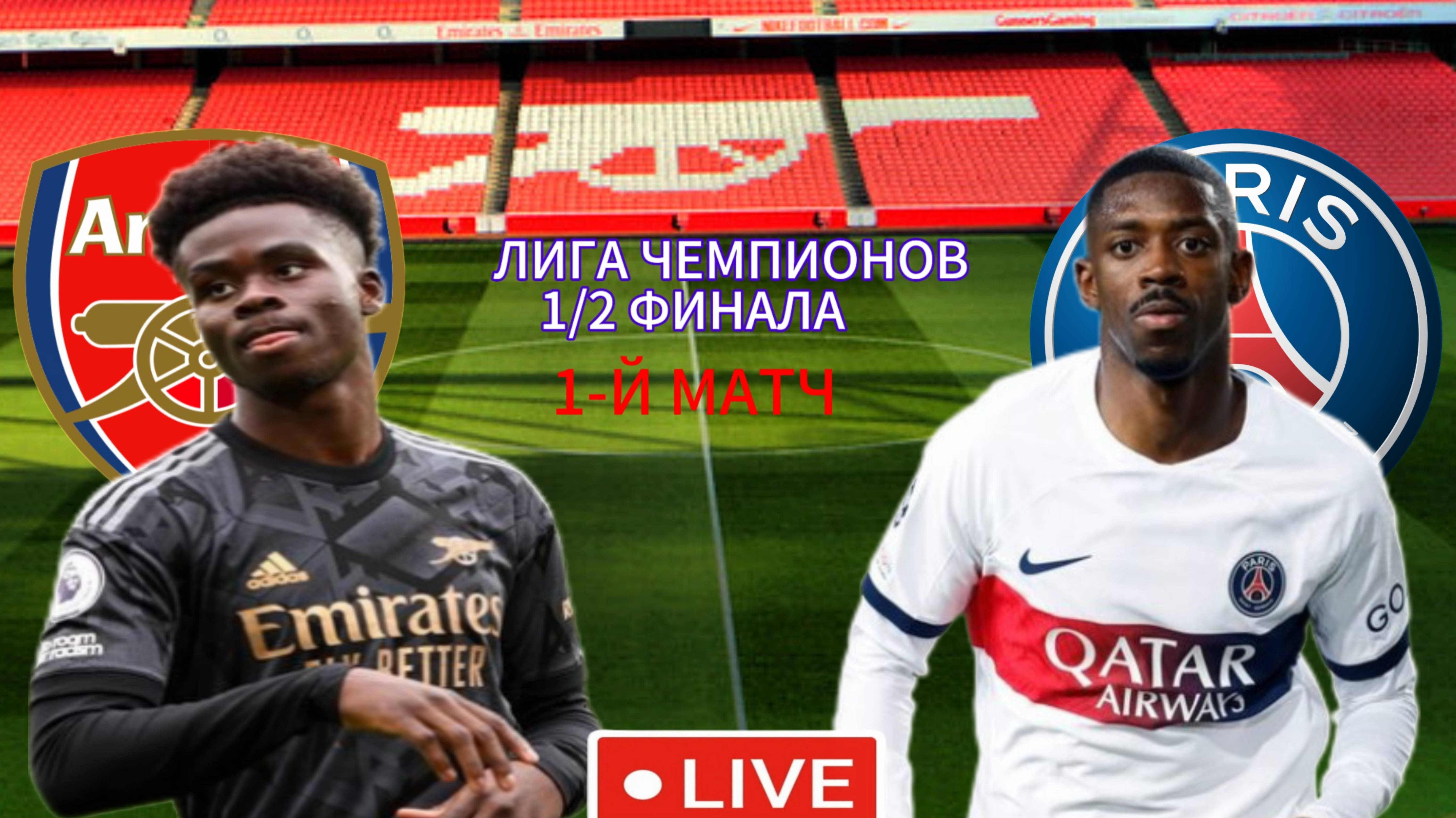 ФУТБОЛ ЛИГА ЧЕМПИОНОВ 1/2 ФИНАЛА. АРСЕНАЛ - ПСЖ. ПРЯМАЯ ТРАНСЛЯЦИЯ