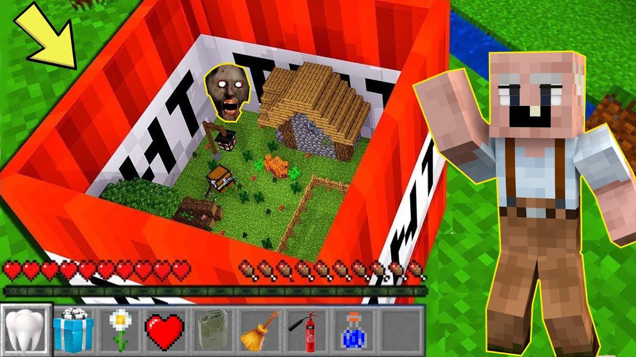 GRANDPA ПОСТРОИЛ СЕКРЕТНЫЙ ДОМ В ДИНАМИТЕ ДЛЯ БАБКИ ГРЕННИ В МАЙНКРАФТ НУБИК В MINECRAFT ТРОЛЛИНГ