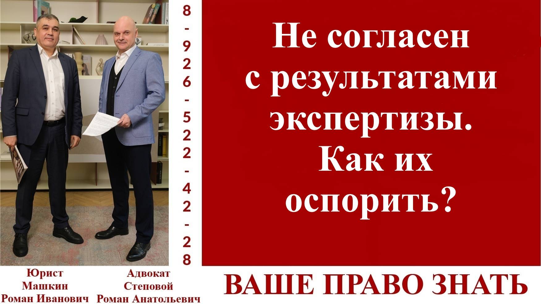 В ролике эксперт адвокат Роман Анатольевич Степовой отвечает на вопрос подписчиков. Телефон для консультаций +7-926-522-42-28 https://taplink.cc/md_rielt https://t.me/vashepravo_znat группа в Телеграмм для общения. Канал «Ваше право знать» создан для помощи гражданам в решении их юридических и не только вопросов. В форме кратких консультаций эксперты канала доступно рассказывают о возможных путях выхода из сложных правовых ситуаций. Основной целью канала является оказание аудитории юридических услуг и повышение правовой грамотности населения. Эксперты канала простым и понятным языком рассказывают о практической юриспруденции на конкретных примерах. Подписывайтесь на наш канал, обращайтесь с вопросами и за помощью. Мы найдем время для каждого. ЭКСПЕРТЫ: Машкин Роман Иванович, практикующий юрист со стажем 23 года, 2 Высших образования: Ставропольское ВАИУ (первые два года СВАУЛШ): штурманский факультет, Инженер по управлению воздушным движением. В 2000 году Военный Университет МО РФ, юрисконсультский факультет, юрист. Начальник юридической группы в МО РФ, Помощник начальника Управления по правовой работе-начальник правового управления в Управлении по использованию воздушного пространства РФ, генеральный директор и учредитель Юридической компании и Агентства Недвижимости «МД-Недвижимость», член совета директоров Холдинга «Моя Семья». Правовое сопровождение телевизионных проектов Дом-2, Суд Идет, Машина, Мама в Законе, международных телевизионных проектов. Являлся экспертом в телевизионных программах на телеканалах ТНТ, МИР, ТВЦ, участник круглых столов ТПП, Госдуме РФ, участник конференций, проводимых Минстроем России, член школы переговоров Игоря Рызова, состоит в деловом клубе Екатерины Уколовой. Правовое сопровождение компаний и ИП, представительство в Арбитражных судах и судах общей юрисдикции по вопросам налогового права, гражданского права, международного права. Банкротство юридических лиц. Семейное право. Сопровождение сделок с недвижимостью в РФ и за рубежом. Степовой Роман Анатольевич, адвокат, руководитель адвокатского кабинета. С 2002 года успешно осуществляет адвокатскую деятельность по представлению интересов и защите прав граждан и юридических лиц. С 2000 по 2019 года преподавал на юридическом факультете Московского государственного областного университета, (ныне Государственный университет просвещения), дисциплины гражданско-правового и государственно-правового профиля. Автор многочисленных публикаций по вопросам прикладной юриспруденции. В работе с клиентами придерживается принципов порядочности и профессионализма. В любой ситуации ищет оптимальную модель правового поведения и минимизирует потери клиента. Основную задачу видит в осуществлении реальной помощи доверителям и подзащитным. В общении с клиентами максимально честен. Майор юстиции запаса. Посаднева Светлана, ведущая, студентка старших курсов ВУЗа, эксперт трудового права. Телефон для консультаций +7-926-522-42-28 Смотрите нас где удобно https://t.me/vashe_pravo_znat Телеграмм канал проекта "Ваше право знать." https://t.me/vashepravo_znat группа в Телеграмм для общения. https://www.youtube.com/@VashePravoZnat канал Ваше право знать на Ютюб https://rutube.ru/channel/30527736/ канал Ваше право знать на Рутюб https://vk.com/public219361576 сообщество во Вконтакте https://www.youtube.com/@user-zt2rt7vh1m канал Ютюб адвоката Романа Степового https://md-rielt.ru/ сайт МД-Нед