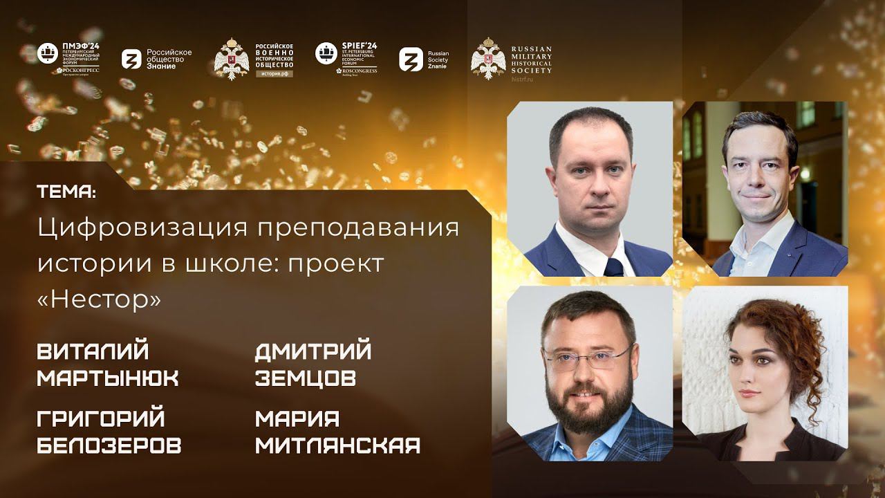 7 июня в 10:40 прямой эфире дискуссии «Цифровизация преподавания истории в школе: проект "Нестор"». В ней примут участие: Григорий Белозеров, заместитель генерального директора – Операционный директор Агентства стратегических инициатив; Дмитрий Земцов, проректор Национального исследовательского университета «Высшая школа экономики»; Виталий Мартынюк, исполнительный директор РВИО; Мария Митлянская, лидер проекта «Археономика: экономика наследия», преподаватель Национального исследовательского университета «Высшая школа экономики». Дискуссия пройдет на площадке совместной мультимедийной студии Российского военно-исторического общества и Российского общества «Знание» ПМЭФ-2024. Самое актуальное от федерального портала История.РФ в соцсетях: VK: https://vk.com/rvio_ru Яндекс.Дзен: https://zen.yandex.ru/histrf Telegram: https://t.me/rf_history Rutube: https://rutube.ru/channel/23517827/ YouTube: https://www.youtube.com/channel/UCJf5zN7YGOYF3IacL9MqJAg #история #учебникистории #историярф