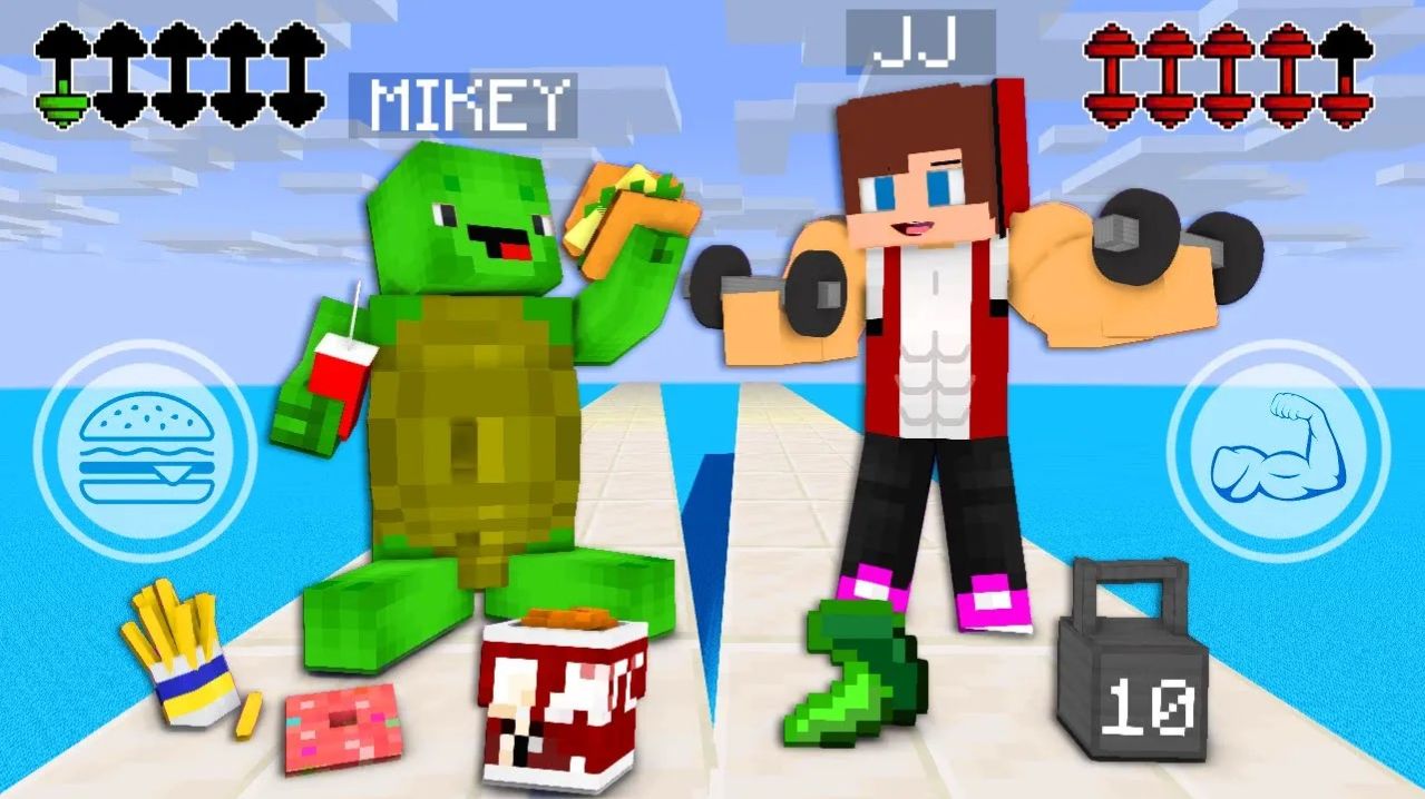 Джей Джей против Майки - ТОЛКАТЕЛЯ ЖИРА - Жир против мышц. Майнкрафт Мультик