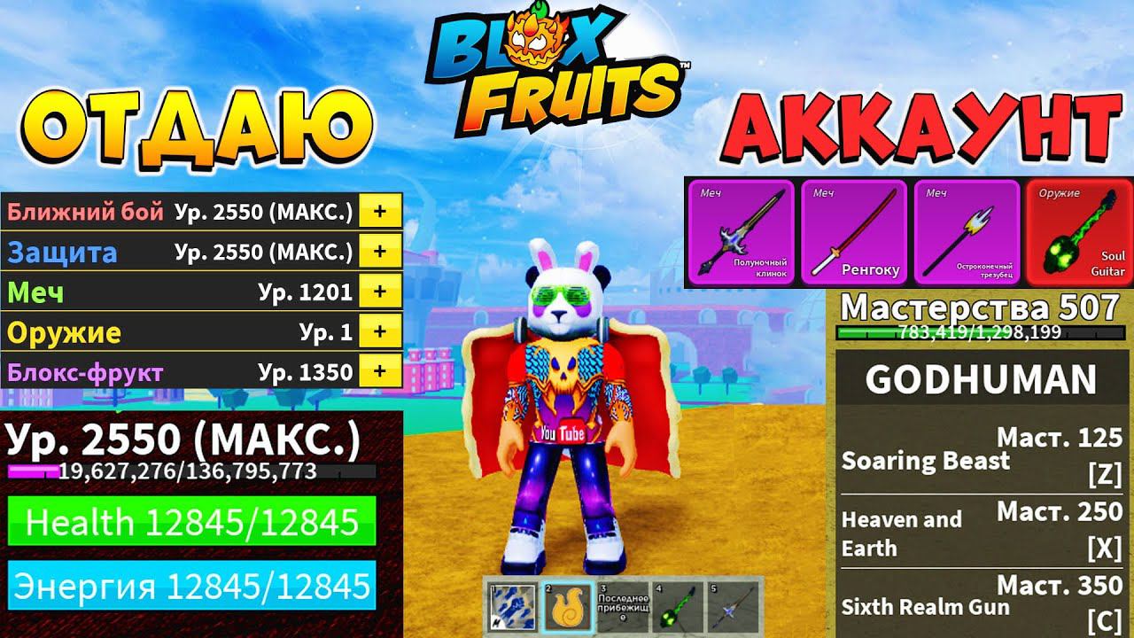 ОТДАЮ ФУЛЛ АККАУНТ 2550 ЛВЛ с ГОД ХУМАН и ГИТАРОЙ в 18:00БЛОКС ФРУТС РОБЛОКС СТРИМ 989