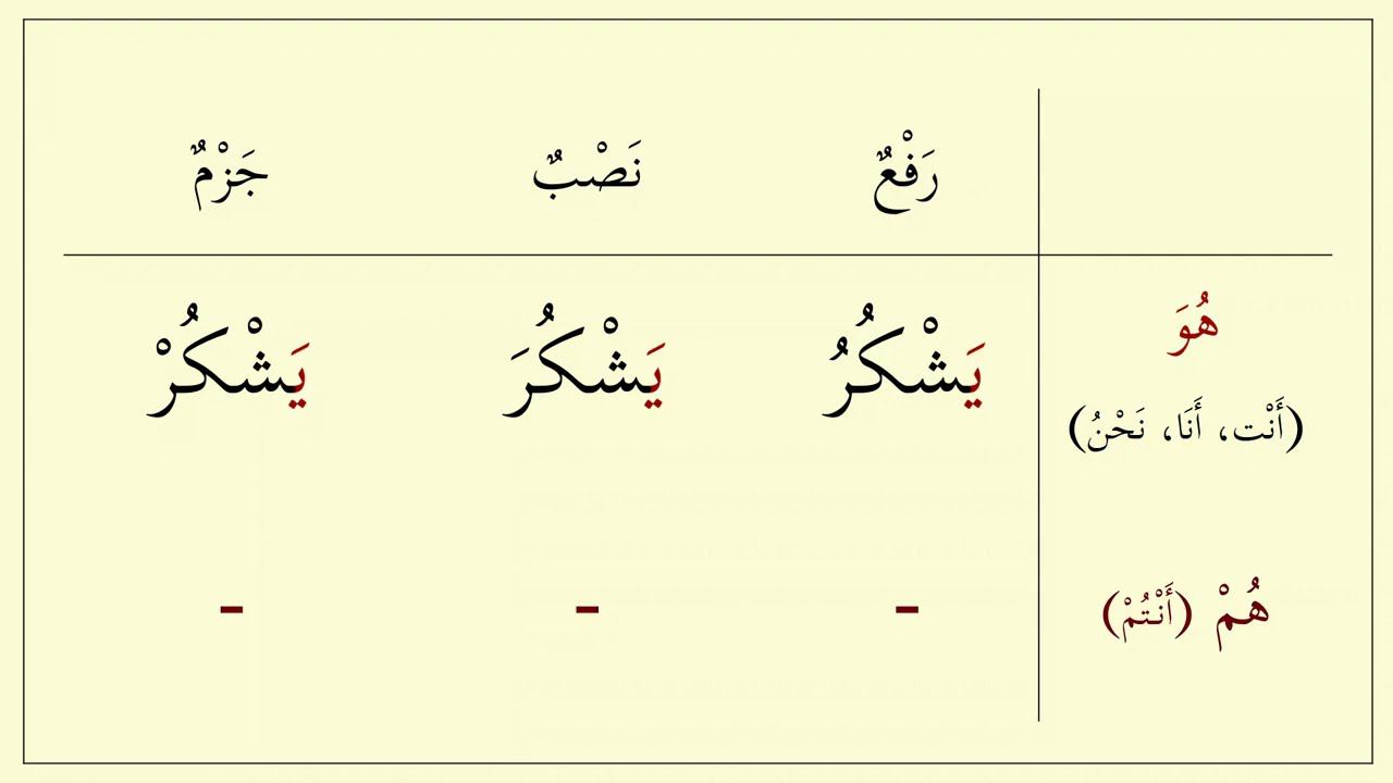 Продолжаем тему падежей глаголов. Читать: https://drive.google.com/file/d/15oeCEBqK4LEINPaFC1ITwykh6ZXAl9Un/view?usp=sharing Учить: https://drive.google.com/file/d/10dSN94eqYMnlIRZTq-oYv1MiEtnLPve_/view?usp=sharing Уроки в телеграмм: https://t.me/arabKoran 00:00 Начало 00:11 Аяты с примерами в описании 00:19 Продолжаем тему падежей глагола 00:24 Признак падежа раф 00:31 Признак падежа насб 00:38 Признак падеж джазм 00:46 Это ОСНОВНЫЕ признаки 00:58 Два условия для основных признаков 01:03 После основы к глаголу ничего не присоединяется 01:10 Последний харф глагола не слабый 01:25 Вторичные признаки падежа 01:44 Формы глагола для местоимения (он) 02:07 Местоимение (они) 02:22 Формы глагола для местоимения (ты) 02:33 Местоимение (вы) 02:43 Формы глагола для местоимения (я) 02:53 Формы глагола для местоимения (мы) 03:03 Итоговая (общая) таблица основных признаков 03:18 Итоговая (общая) таблица для глаголов мн.числа 03:34 Совет для новых зрителей