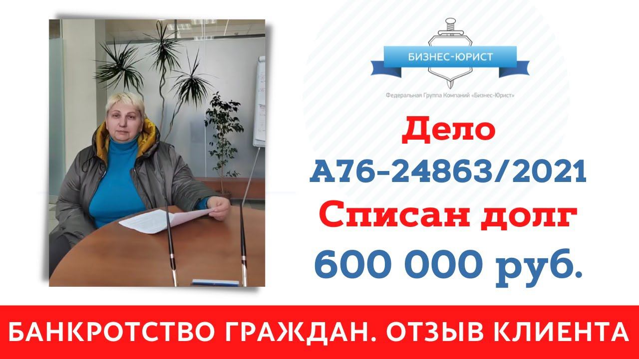 У Ольги Владимировны (номер дела: А76-24863/2021) были долги более 600 000 рублей, оплачивать их уже не было возможности: Клиент была трудоустроена и имела квартиру, но ежемесячные платежи превышали заработную плату, а стоимость квартиры - превышала размер долга. Когда коллекторы начали преследовать Клиента с угрозами, знакомые предложили Ольге Владимировне избавиться от долгов и посоветовали Компанию “Бизнес-юрист”. Благодаря работе наших юристов суд признал Ольгу Владимировну банкротом, и через 10 месяцев все долги были полностью списаны! Знакомые нашего Клиента за рекомендацию получили приятный бонус - 10 000 руб. от Компании. Банкротство физ лиц - списание долгов (кредиты, займы, налоги, штрафы, ЖКХ и проч.) по Федеральному закону №127. Коллекторы, приставы, банки: забудьте о них навсегда! БЕСПЛАТНАЯ консультация по банкротству от ведущего юриста: по номеру 8-800-600-25-56. Звоните, мы будем рады Вам помочь! Спишем Ваши долги или выплатим их за Вас! Отзывы наших Клиентов: https://youtube.com/playlist?list=PLwAfB0AyBrR1Z1--nFl9rx9gf8D4bO5AR Подписывайтесь на канал, чтобы знать больше новостей, лайфхаков и полезных советов от юристов! #банкротство #банкротствофизлиц #банкротствограждан #приставы #коллекторы #долгипокредитам #списатьдолги