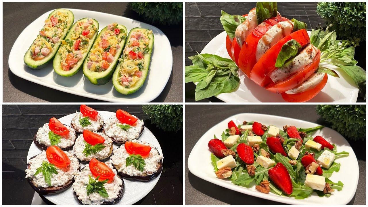 Легкие закуски на новогодний стол - просто, вкусно, быстро! Простые идеи для вашего новогоднего застолья. Все просто – и вкусно! Привет, друзья! С наступающим Новым Годом 2026! Сегодня я поделюсь с вами идеей для вашего новогоднего стола, которая сделает ваш праздник невероятным – вкусные закуски на Новый Год. Зачем ждать полуночи, чтобы начать праздновать? Давайте подготовим закуски заранее, чтобы наслаждаться волшебством момента вместе с гостями! Мой выбор – простые и вкусные закуски на новогодний стол. Необычные сочетания вкусов и легкость приготовления – вот мой секрет. Неважно, являетесь ли вы опытным поваром или начинающим, эти закуски сделают ваш стол запоминающимся. Как насчет мини-блинчиков с лососем и крем-сыром? Или красочных канапе с авокадо и креветками? Эти закуски на новый год 2026 не только восхитят ваши вкусовые рецепторы, но и создадут праздничное настроение. Но, конечно же, не забывайте о классике – сырные шарики и крекеры с оливковой пастой. Просто, но всегда популярно! А для сладкого финала – фруктовые шашлыки с шоколадным погружением. Закуски на новый год не должны быть сложными, чтобы быть восхитительными. Приготовьте их заранее, чтобы вечеринка началась мгновенно, когда часы пробьют полночь. Делитесь своими идеями в комментариях, и вместе мы создадим незабвенный Новый Год 2026! Ингредиенты: 2 помидора. 200 г моцареллы. соль. молотый перец. базилик. оливковое масло. бальзамический крем. 100 г сыра. 100 г ветчины. 1/2 красного перца. молотый перец. соль. укроп. 2-3 столовые ложки майонеза. 3 огурца. 4 столовые ложки оливкового масла. 1 столовая ложка винного уксуса. 1 чайная ложка меда. соль. молотый перец. руккола. 50 г феты. клубника. 40 г грецких орехов. баклажан. масло растительное. 200 г феты. молотый перец. соль. 50 г грецких орехов (измельченных). 1-2 зубчика чеснока. укроп. 2-3 столовые ложки сметаны. томаты черри. петрушка. Приятного аппетита! закуски на новый год, закуски на новый год 2026, закуски на новый год рецепты, закуски на новый год 2026 рецепты, вкусные закуски на новый год, закуски на стол на новый год, салаты и закуски на новый год, простые закуски на новый год, праздничные закуски на новый год, закуски на праздничный стол новый год, простые рецепты закусок новому году, вкусные закуски на новый год рецепты, простые и вкусные закуски на новый год, салаты и закуски на новый 2026 год, легкие закуски на новый год, праздничные закуски на новый год 2026,