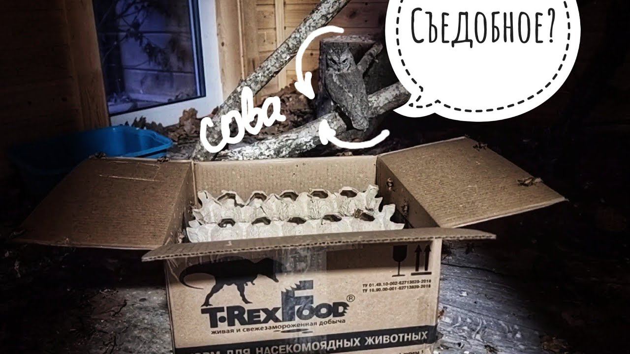 Совы сплюшки охотятся на коробку со сверчками из T-RexFood. Очень внезапные совы!