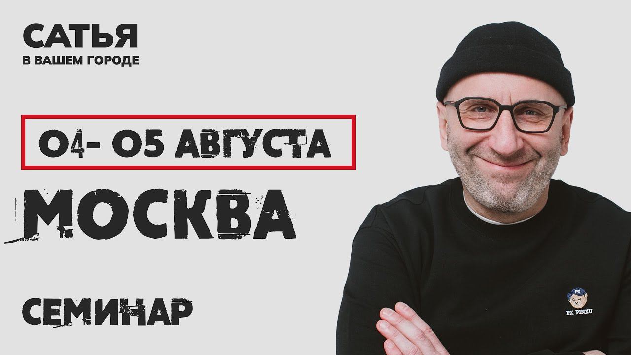 4 и 5 августа Сатья в Москве. Новый, уникальный формат 4 августа - МУЖСКОЙ КЛУБ Не знаешь кто такой Сатья? 4,5 миллионов подписчиков в соцсетях и YouTube. Входит в топ 10 лидеров доверия россиян среди блогеров. Автор 17 книг по семейной психологии. Провёл более 7000 консультаций для мужчин, женщин и пар. 29 лет женат на одной женщине, а это уже талант. Такого семинара Вы ещё не видели. Это Новый, уникальный формат. - Никаких энциклопедических и абстрактных фраз - Без оторванных от жизни примеров и ситуаций -Только знания, которые реально применить прямо здесь и сейчас! С ответами на вопросы гостей семинара С разбором конкретных ситуаций из зала С пошаговым планом действий под определённую проблему в стиле Сатьи - весело и жизненно! Купить билеты на семинар Сатьи: https://th.link/2Bpqw Заказ книг на сайте: https://th.link/2Bpr6 Получить консультацию психолога: https://cbiletom.ru/event.php?event=2694 Ссылки на другие соц.сети : https://th.link/2BprQ Серия бесплатных уроков о построении отношений — https://th.link/2BprY #сатья #сатьядас #нескучнаясемейнаяпсихология #семейнаяпсихология #семья #любовь #сатьяэксперт #постороениеотношений #детскоевоспитание #женскаясамооценка #мужскоеиженское #женщинаиработа #счастливаясемья #секс #дети #женскаяпсихология #мужскаяпсихология #психология