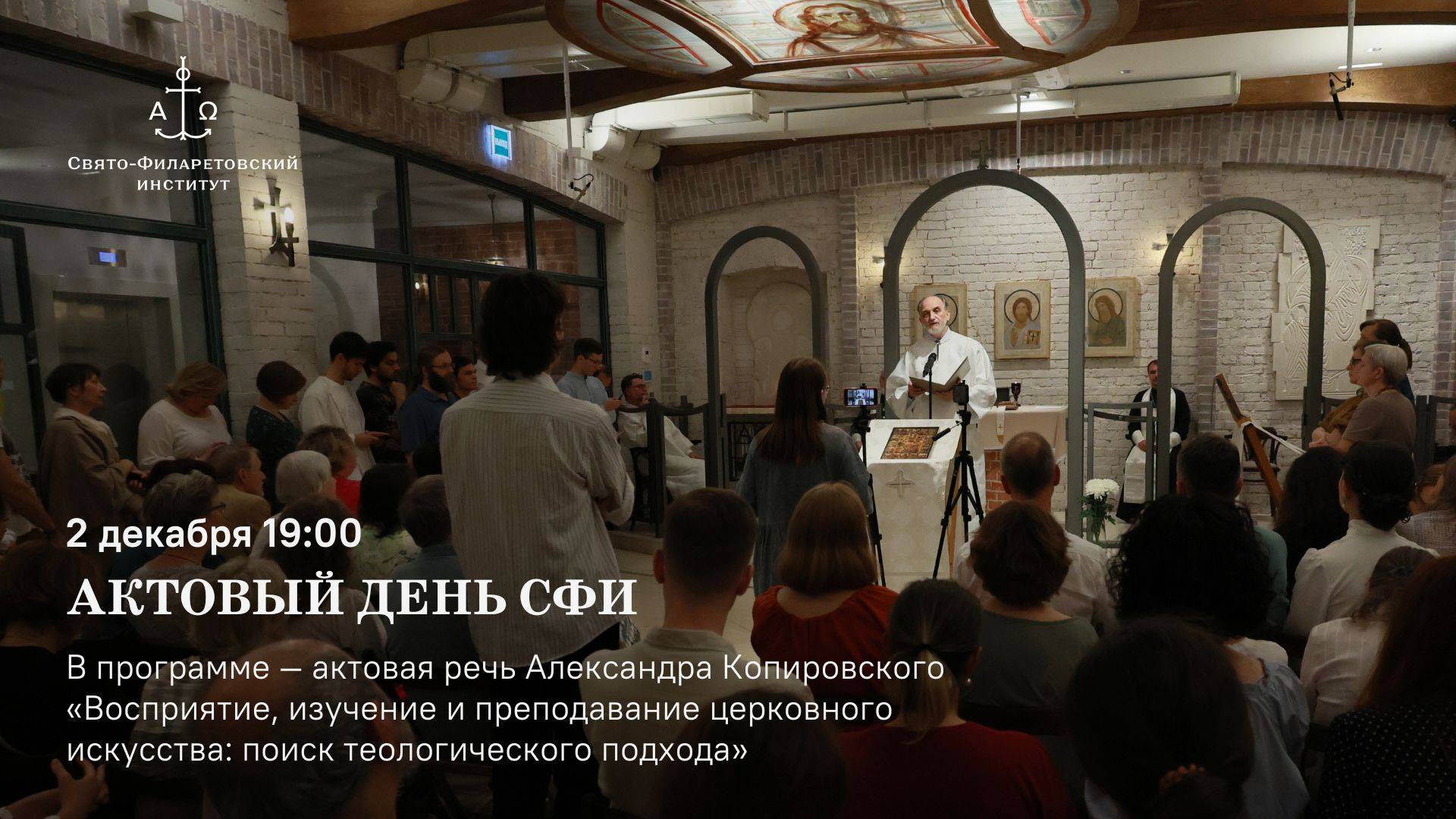 Приглашаем преподавателей, сотрудников, студентов, выпускников и друзей Института на традиционный Актовый вечер в день памяти нашего небесного покровителя святителя Филарета Московского. Актовую речь «Восприятие, изучение и преподавание церковного искусства: поиск теологического подхода» прочитает ректор Свято-Филаретовского института, член Ассоциации искусствоведов кандидат педагогических наук Александр Михайлович Копировский.
