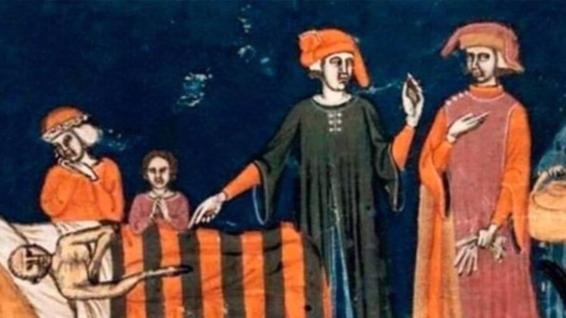 Фреска 14 века из итальянского города Верона. Руки умершего сложены буквой Z. На одеяле снизу отчетливо видны 2 ядерных взрыва с овальными ножками гриба. Эти же контуры в совокупности образуют силуэт атомной субмарины "Курск". Фреска говорит нам о грозных событиях в исторический период от прошлого "Курска" и до Курска в недалеком будущем!