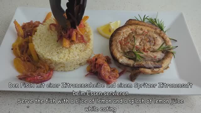 Поддержите пожалуйста канал, мы стараемся для Вас , что бы Вам было интересно , реквизиты ниже в описании . Спасибо . СБЕР. 2202 2032 4086 8523 ТИНЬКОФФ 2200 7007 3056 0918 Ингредиенты и подготовка: 2 скумбрия Также можно использовать филе другой рыбы. Сделайте надрезы ниже плавников. Разрезать пополам и удалить внутренности Удалить голову Проделайте то же самое с другой рыбой. Промойте внутри и высушите бумажным полотенцем Теперь нам нужно нарезать филе Обрежьте плавники, удалите черную мембрану Попробуйте удалить все кости щипцами для рыбы. Или используйте нож Положить в кастрюлю для маринования 4 столовые ложки соевого соуса 2 столовые ложки оливкового масла Черный перец сок ½ лимона сок ½ апельсина (или 1 чайная ложка сахара) 1/3 острого перца Удалить семена и мелко нарезать 3 зубчика чеснока Смажьте рыбу маринадом с обеих сторон Оставьте рыбу мариноваться на 15-30 минут. Когда рыба замаринуется, разрежьте филе пополам. У вас будет 8 шт. Мне нужны деревянные шпажки Заверните 4 половинки филе, как показано на видео. Проколите филе скумбрии с двух сторон шпажками Проделайте то же самое с оставшимися филе Линия выпечки с пергаментной бумагой Перевернуть филе Смажьте оставшимся маринадом Выпекать при 190°C 28 минут (верхний/нижний жар) + 1-2 минуты на гриле при максимальной температуре Доведите до кипения 2 стакана воды Соль 1 стакан пшеничного булгура 2 красные луковицы (средние) Разогрейте сковороду с 2 столовыми ложками оливкового масла Обжарить лук 2-3 минуты до мягкости 1 большой помидор 1 желтый перец ½ красного перца ½ острого перца Обжаривать 5 минут на среднем огне Соль Черный перец 1 чайная ложка сахара 1 столовая ложка бальзамического уксуса Обжаривать еще 1-2 минуты Добавьте щепотку сушеного базилика (или используйте свежий базилик). Выньте скумбрию из духовки, ароматную и подрумяненную Украсьте розмарином, пока он еще горячий Убираю шпажки, скумбрия хорошо держит форму Смешать масло с булгуром Подавать рыбу во время еды с долькой лимона и сбрызнуть лимонным соком.