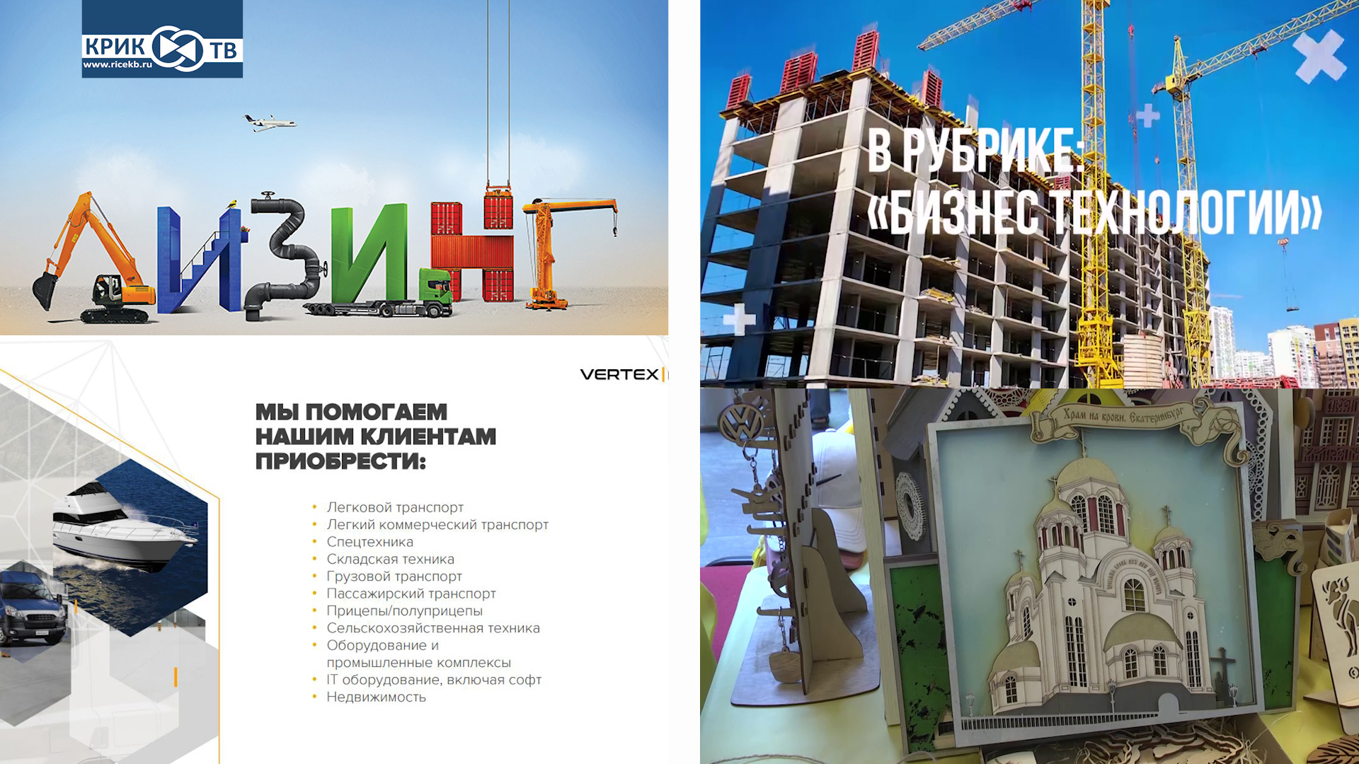 Смотрите сегодня в выпуске: Всё об инновационных лизинговых решениях и о предложении Уральской команды профессионалов в сфере лизинга. Мы пообщались с Директором компании «VERTEX LEASING». Эксперт и руководитель компании (УРФО) – Никита Штуца дал ответы на самые распространённые вопросы и поделился информацией, чем уникальна компания и в чём собственно заключается инновационность. Во второй части выпуска сюжет от моей коллеги Натальи Гранд в рамках рубрики «бизнес-технологии». Наталья побывала на ярмарке в Екатеринбурге, где она смогла познакомиться с мастерами со всей России, для которых увлечение творчеством превратилось в бизнес.