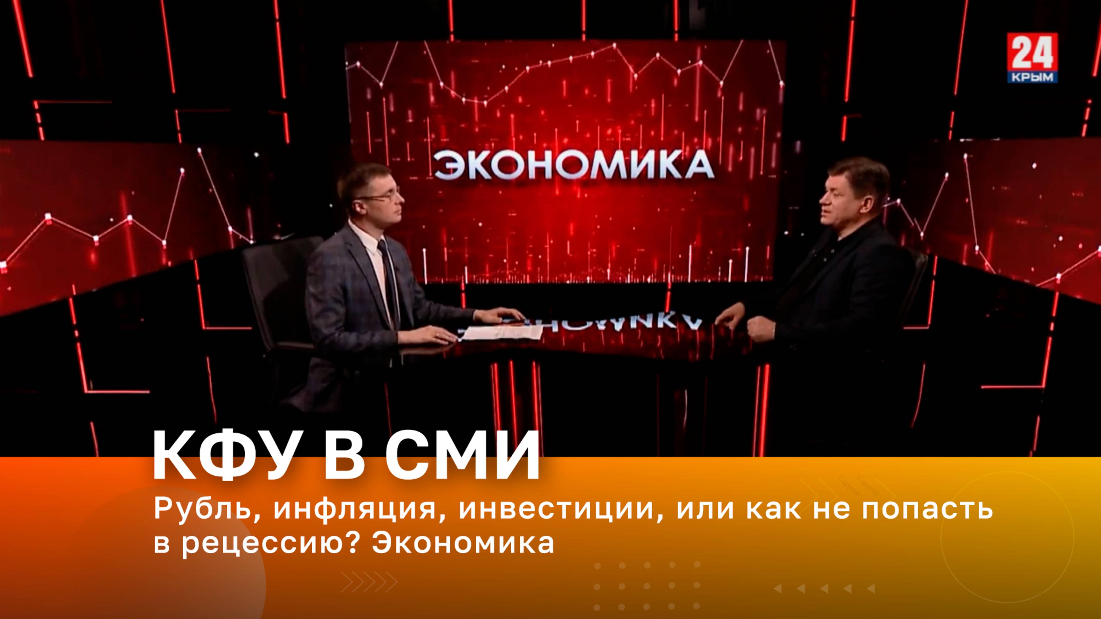 Телеканал «Крым 24». В эфире – заведующий кафедрой государственного и муниципального управления ИЭиУ КФУ им. В.И. Вернадского Андрей Вершицкий Тема эфира – ВВП России за 7 месяцев этого года вырос на 1,1%. На этом фоне, чтобы ускорить экономический рост, Центробанк снижает ключевую ставку. Как ослабление рубля влияет на инфляцию? Почему теряют доходность рублёвые депозиты? Может ли рост цен на топливо снова разогнать инфляцию выше 10%?
