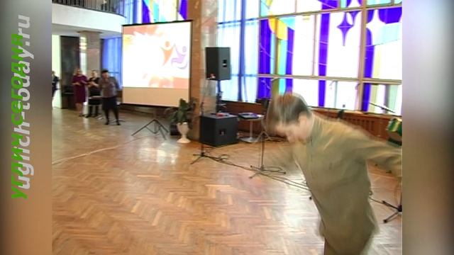 Воспитанник ансамбля танца «Конфетти» Родион Арсеньев исполняет танец на песню «Журавль по небу летит» (авт. Юлий Ким, Владимир Дашкевич). Фрагмент вечера, посвящённого Международному Дню инвалидов.