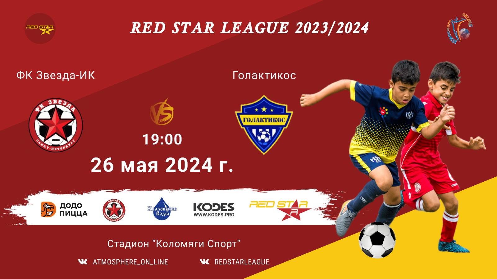 Red Star League среди команд 2013 г.р. (U11) 26 МАЯ АПРЕЛЯ 2024 САНКТ-ПЕТЕРБУРГ, Стадион "Коломяги-Спорт" ФК "Звезда-ИК" - ФК "Голактикос"/Red Star League, 26-05-2024 19:00
