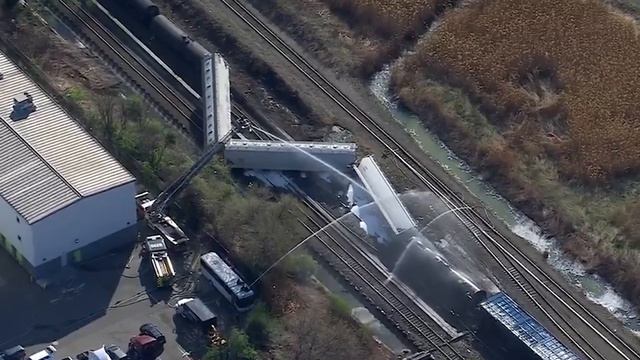 В городе Норт-Берген, штат Нью-Джерси, сошел с рельсов грузовой поезд компании CSX, что привело к утечке химикатов и временному перекрытию крупной автомагистрали.