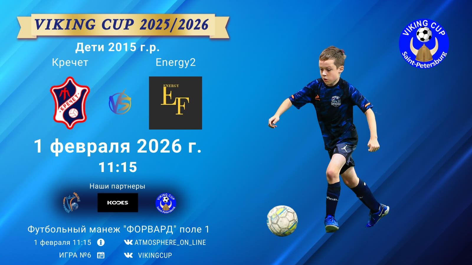 VIKING CUP среди команд 2015 г.р. (U11), Поле 1 1 февраля 2026 САНКТ-ПЕТЕРБУРГ, ФЦ "Форвард" Кречет-Energy2/VIKING CUP, Игра №6, 01-02-2026 11:15