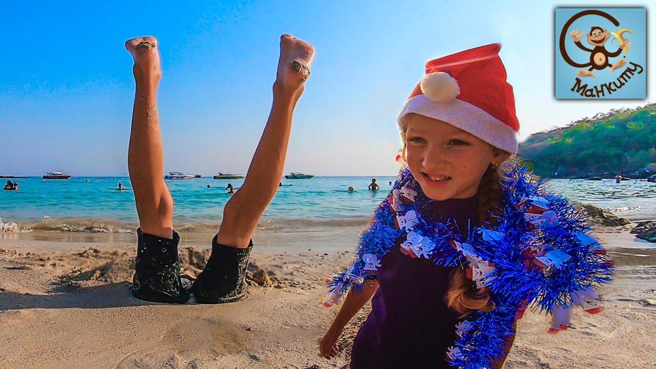 Даня и Диана встретили Новый год в Таиланде. Но вот в Таиланде нет снега, чтобы слепить снеговика, поэтому Диана и Даня отправился на пляж, чтобы слепить снеговика из песка.