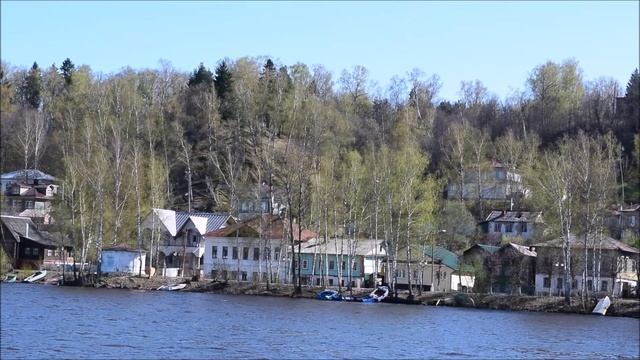 Панорама города Плес, Ивановская область, с борта теплохода на реке Волга. Май 2017 г.