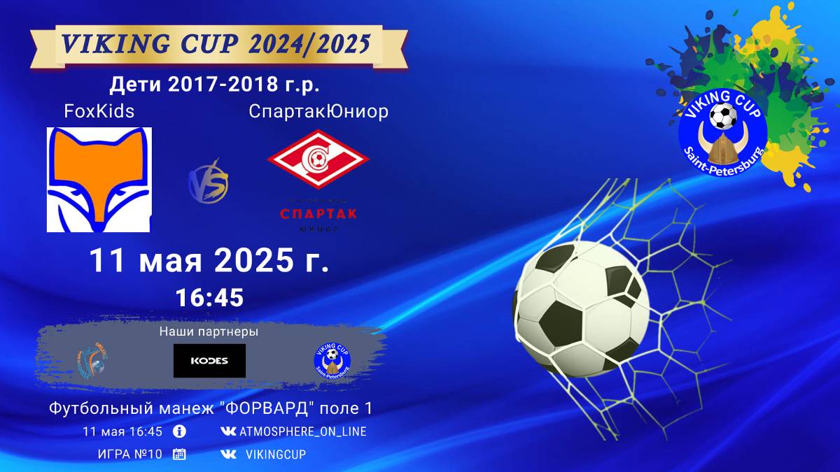 VIKING CUP среди команд 2017-2018 г.р. (U7-U8), Поле 1 11 мая 2025 САНКТ-ПЕТЕРБУРГ, ФЦ "Форвард" ФК "FoxKids" - ФК "СпартакЮниор"/VIKING CUP, Игра №10, 11-05-2025 16:45