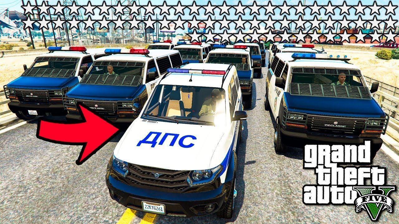 GTA 5 МОДЫ 64 ЗВЁЗД РОЗЫСКА ! УГНАЛ РУССКИЙ УАЗ ПАТРИОТ У ГЛУПЫХ КОПОВ