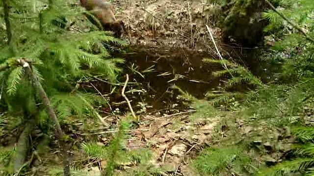 Маня в лесу вброд перешла препятствие.