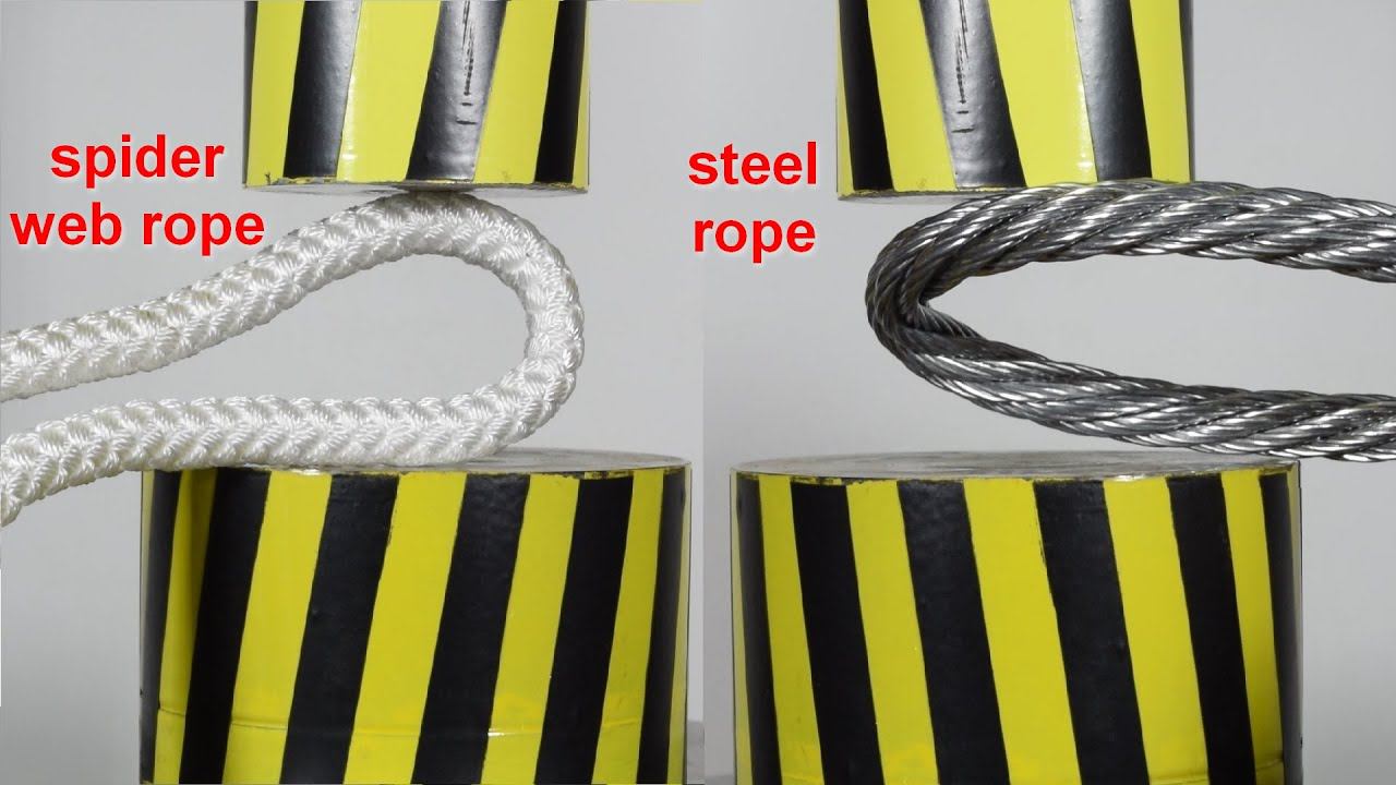 Using a hydraulic press, we will check the strength of different ropes: steel, Kevlar, spider web rope