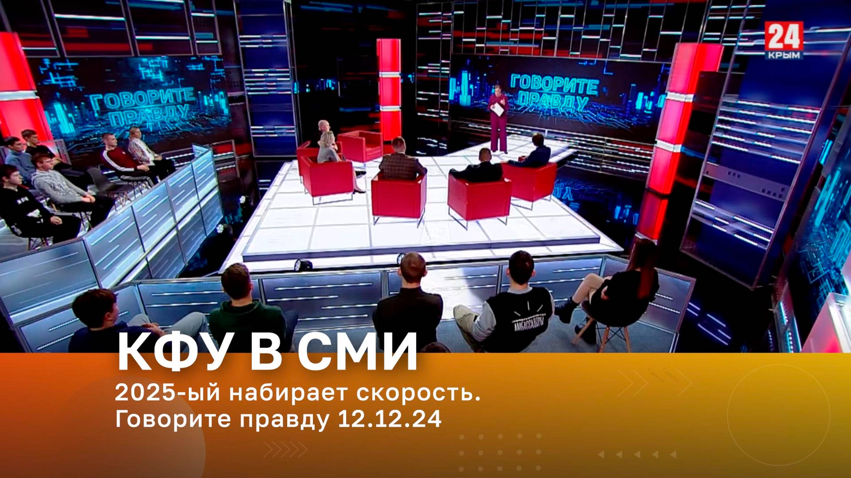 Четверг, 12 декабря. «Крым 24». Здесь хорошо. Вы нам поверьте. 2025-ый набирает скорость. Скоро всё случится. С чего начинается отдых? Наши двери открыты. Но что с логистикой перед праздниками? Сколько стоит Новый год в Крыму как дома? Смотрим на градусник. Кабы не было зимы. Температурный южный режим включён, но вдруг сюрпризы. Полуостров. Кусочек неба, упавший на землю. Ему не с чем сравниться. А вот с чем сравниться сервису и гостеприимству? Развитие, инвестиции и новые проекты. Не одни дома. В студии «Говорите правду» с Еленой Емельяновой курортный прогноз.