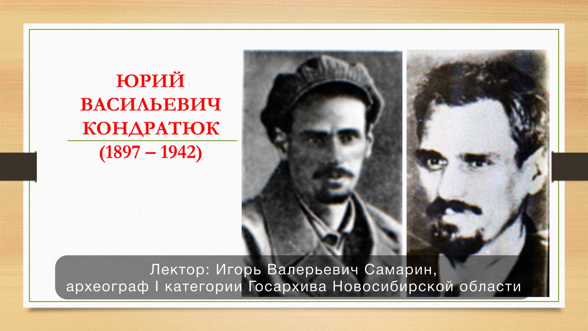 Юрий Васильевич Кондратюк (Александр Игнатьевич Шаргей, 1897–1942 гг.) Посвящается Международному дню космонавтики, 125-летию со дня рождения Юрия Васильевича Кондратюка и 85-летию Новосибирской области. Что связывает одного из пионеров ракетостроения с нашим городом и огромным Сибирским краем? В электронной презентации — интереснейшие фотографии и документы, хранящиеся в ГАНО. Лектор: Игорь Валерьевич Самарин — археограф I категории Госархива Новосибирской области. НГОНБ 11.04.2022