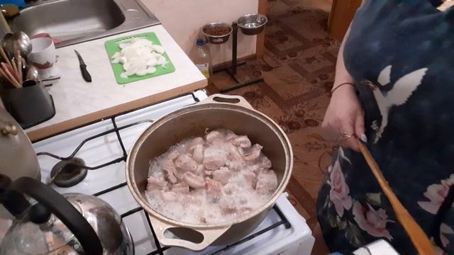 Жарю Много Мяса Оголодали