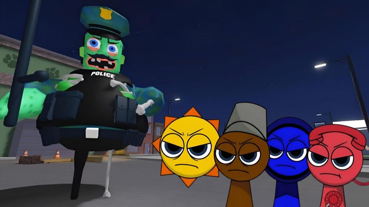 Спрунки Бэби, Мистер Сан, Бруд, Джевин и Телефон играли в режим «Театральный бой Джерри» в ROBLOX.