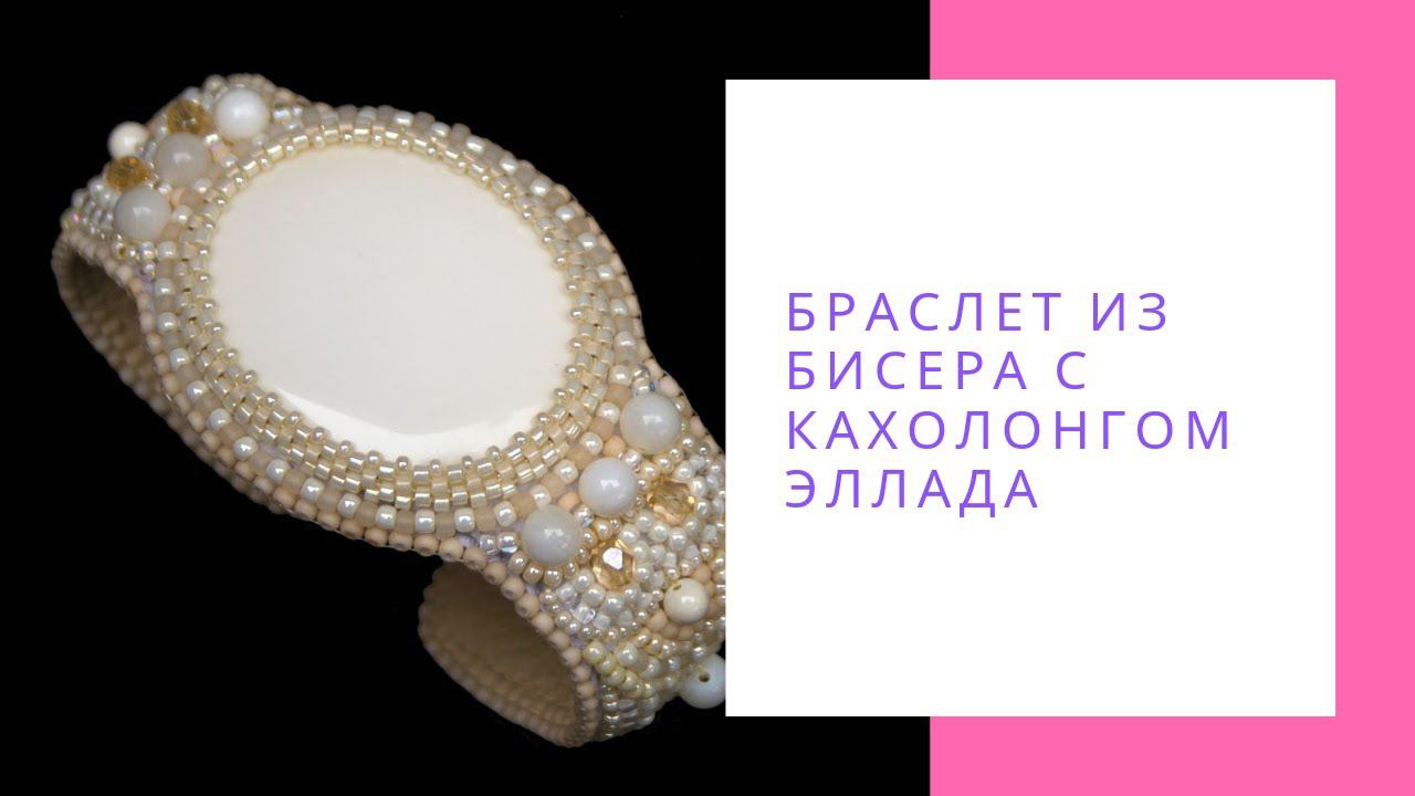 Браслет из бисера с кахолонгом Эллада. Белый бежевый браслет. Браслет ручной работы купить