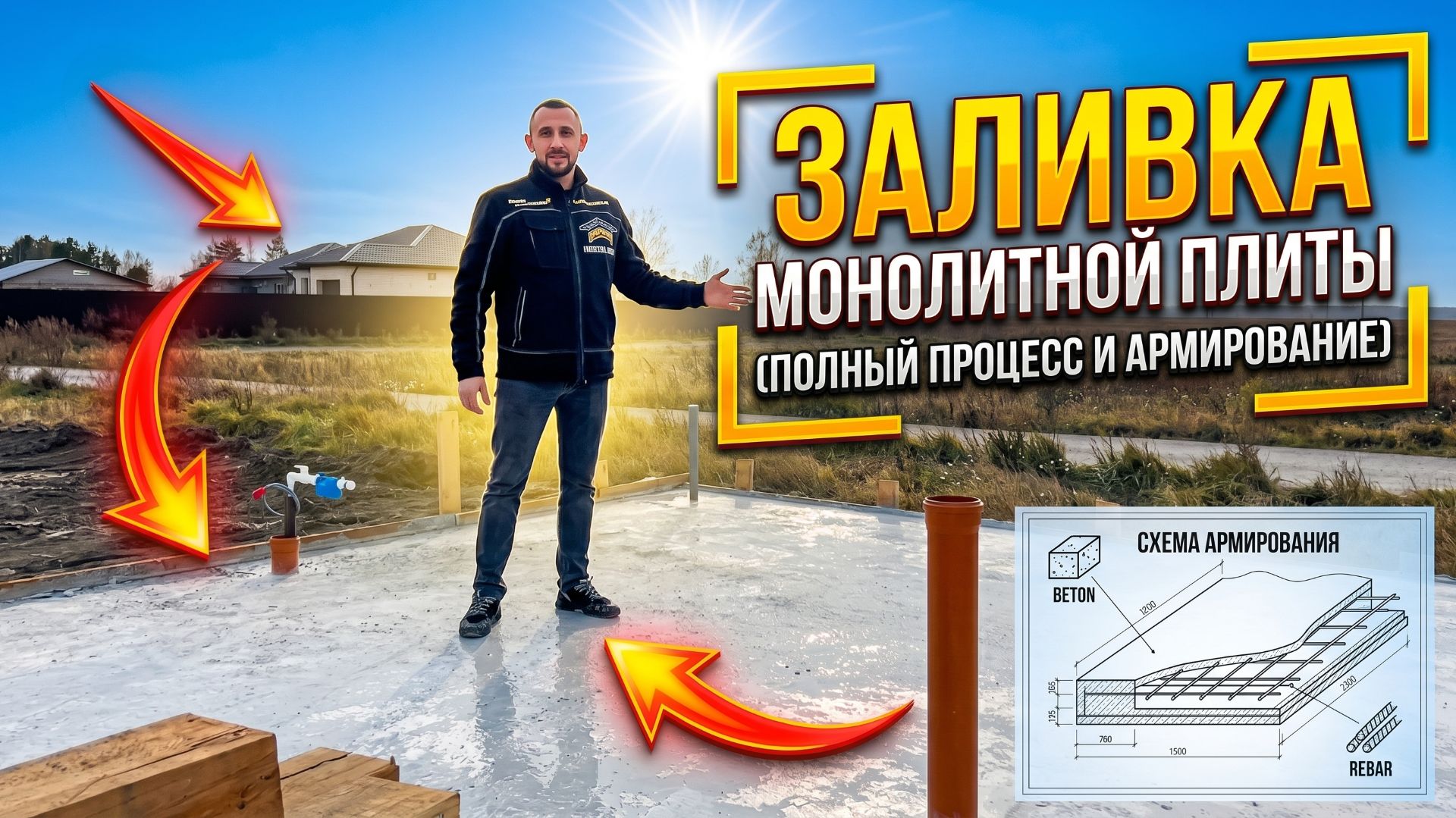 Строительство монолитного железобетонного фундамента плиты под дом из газобетона