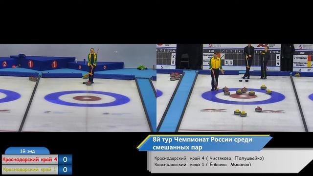 8й тур дорожка С Краснодарский край 4 (Чистякова, Полушвайко) W1 L1 Краснодарский край 1 (Енбаева, Миронов) W1 L1