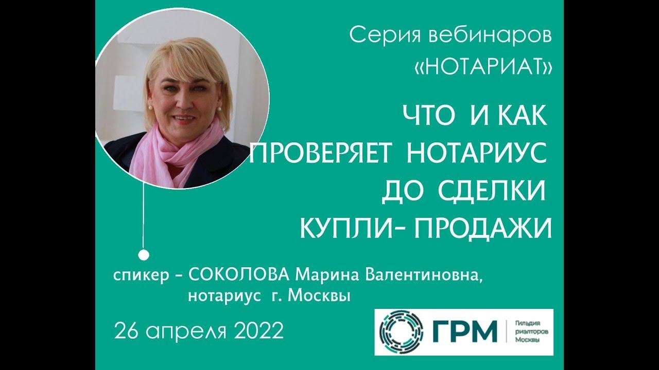 Вебинар ГРМ "Нотариат. Что и как проверяет нотариус до сделки купли-продажи"