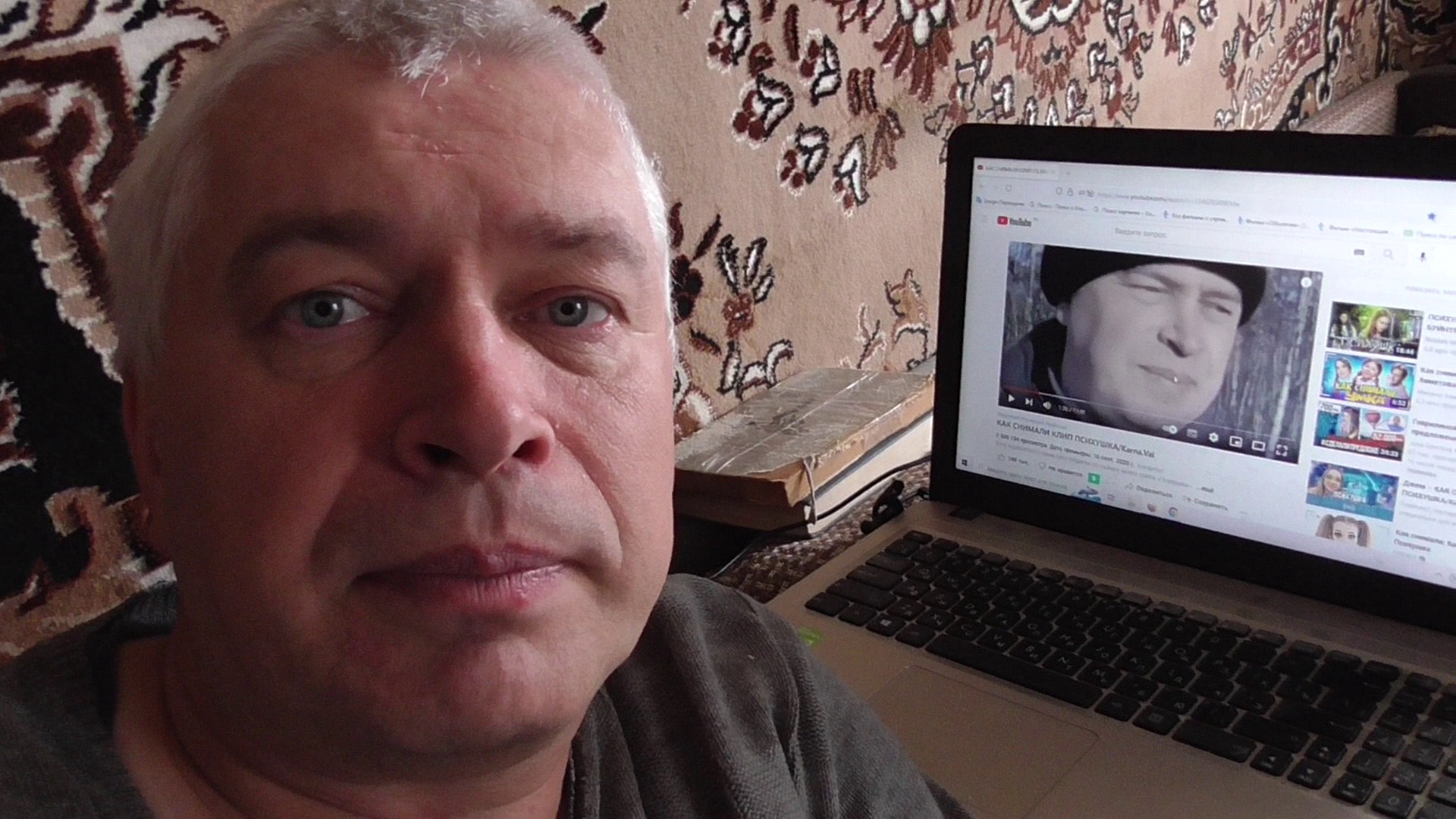 Я за ноутбуком рассказываю про видео. Я увидел себя самого в популярном видео на ютубе