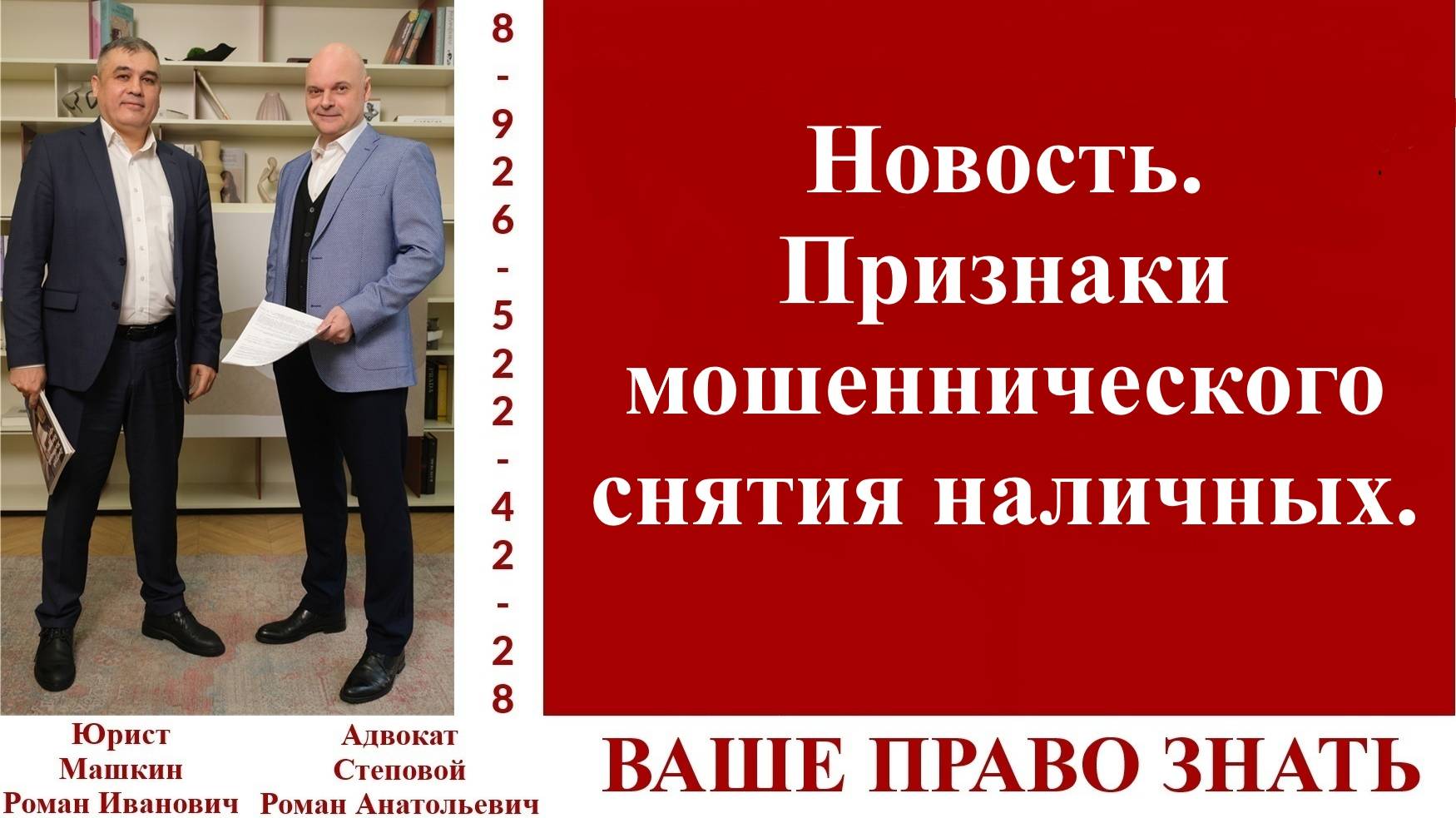 Новость. Признаки мошеннического снятия наличных. #ВашеПравоЗнать