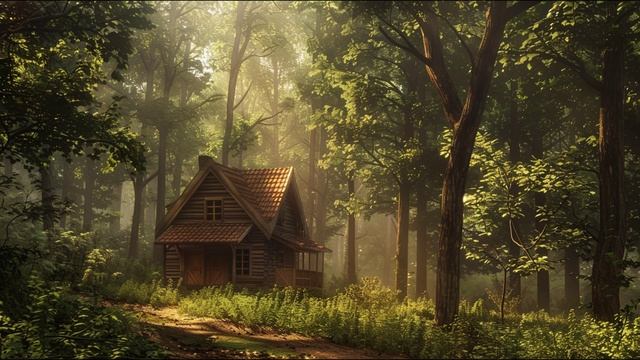 Деревянный домик в лесу | Ветер и звуки леса — для сна и релакса (1 час)