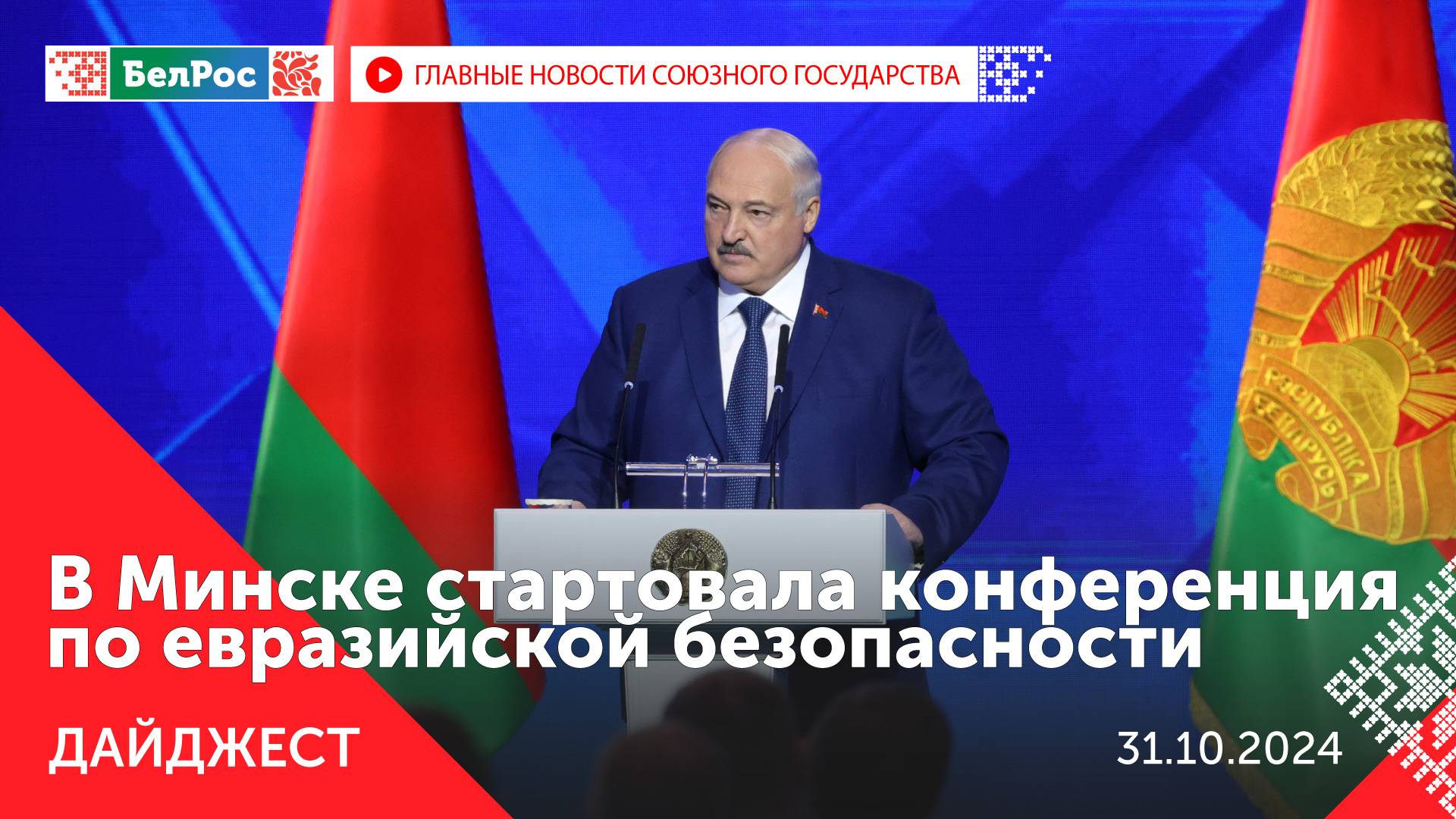 *Главное на 31 октября 21:00* Закадровый текст озвучивает *ИИ Кирилл* - В Минске стартовала Международная конференция по евразийской безопасности. - Беларусь и Рязанская область намерены увеличить товарооборот до $500 млн. - Пограничники СНГ провели конференцию по противодействию трансграничной преступности. - Число нелегальных мигрантов в России выросло в России на 40% с начала года. - Экипаж корабля "Адмирал Левченко" обнаружил подлодку условного противника в Баренцевом море. - С 16 декабря откроется регулярный рейсы из Минска в китайский мегаполис Урумчи. - В Черкесске в пятиэтажном жилом доме произошёл взрыв газа: есть погибшие и раненые. - В белорусской столице проходит II Минская международная конференция по евразийской безопасности. - Лавров: коллективный Запад во главе с Вашингтоном удесятерил усилия по системному сдерживанию России. - МИД РФ выразил решительный протест послу Финляндии за нелегитимного ареста российской недвижимости. - Российские военные военные успешно выполняют боевые задачи по всем направлениям. - В Донецке задержали мужчину за попытку устроить теракт в здании прокуратуры. Смотрите главные новости Союзного государства на телеканале БелРос. Ссылки на наши соц. сети Сайт: http://belros.tv/ Telegram: https://t.me/belrostv Одноклассники: https://ok.ru/group/55657426976918 ВКонтакте: https://vk.com/belrostv TikTok: https://www.tiktok.com/@belros_tv?_t=... RuTube: https://rutube.ru/channel/23501830/ Яндекс. Дзен: https://zen.yandex.ru/belrostvv Наши подкасты на Яндекс. Музыке: https://music.yandex.ru/album/25615251 #СоюзноеГосударство #главныеновости #новостисегодня