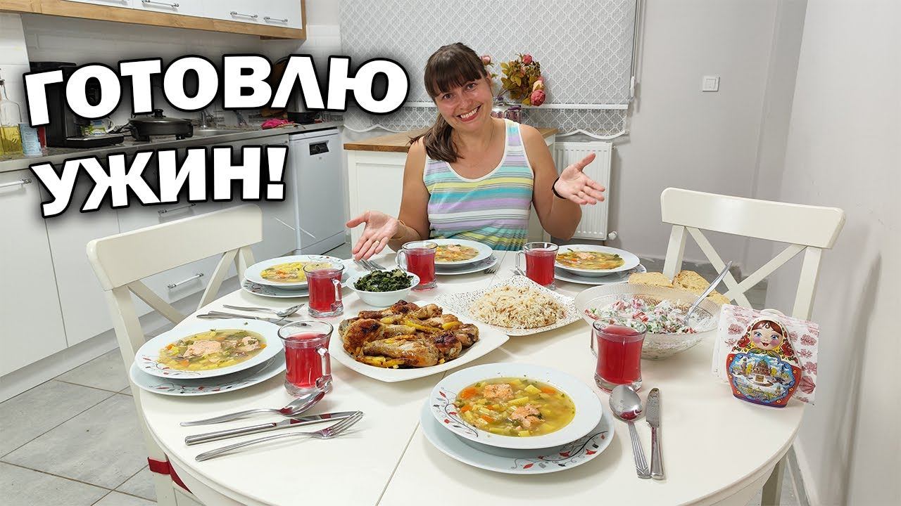 Сегодня готовлю для семьи: рыбный суп, рис по-турецки, куриные ножки на сковороде, закуска из шпината, салат из овощей с йогуртом, компот из свежих фруктов. Ингредиенты: Рыбный суп: Семга турецкая - 700 г Перловая крупа - 0,5 стакана Картофель - 2 шт Морковь - 1 шт Лук - 1 шт Зеленый перец - 1 шт Лавровый лист - 2 шт Соль - 1 столовая ложка Перец черный молотый Масло растительное Рис по-турецки Рис - 1,5 стакана Шехрие в виде риса (вид макарон) - 0,5 стакана Масло сливочное - 30 г Масло растительное - 3 столовые ложки Соль - 1 десертная ложка Вода - 3 - 3,5 стакана Курица на сковороде Куриные ножки - 8 шт Лук - 1 шт Чеснок - 2 зубчика Уксус 9% - 2 столовые ложки Масло оливковое - 1 столовая ложка Соль - 1 десертная ложка Черный молотый перец Масло растительное Закуска из шпината Шпинат свежий - 500 г Лук - 1 шт Соль - 1 чайная ложка Масло растительное Черный перец по вкусу ➡️Подпишись на наш основной канал! https://www.youtube.com/channel/UCodCaqAdmxm5nUUjH5mGdKA/ @turkishpeople1 ❗ПОДПИШИСЬ на личный канал Юсуфа (видео на русском): @papayusuf https://www.youtube.com/channel/UCB7RWmVJsjRW6vcw6nW5oTA ℹ️ Где нас найти? Наш телеграм канал: https://t.me/turkishpeople_papayusuf Instagram: https://www.instagram.com/peopleantalya/ Яндекс Дзен - Кулинарный : https://zen.yandex.ru/turkishrecipes Яндекс Дзен - Семейный : https://zen.yandex.ru/turkishpeople_papayusuf По вопросам рекламы: Instagram: https://www.instagram.com/peopleantalya/ #еда #рецепты #кулинария