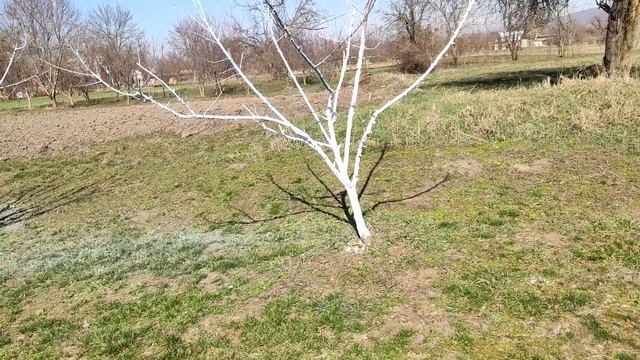 Обработка персика бордосской смесью от курчавости.