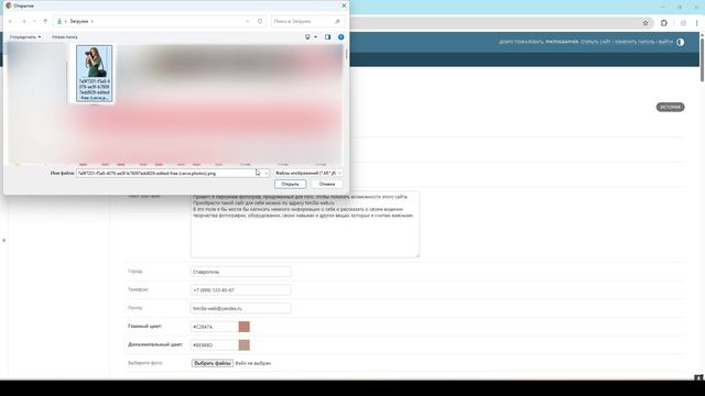 Изменение личных данных на сайте-портфолио для фотографа